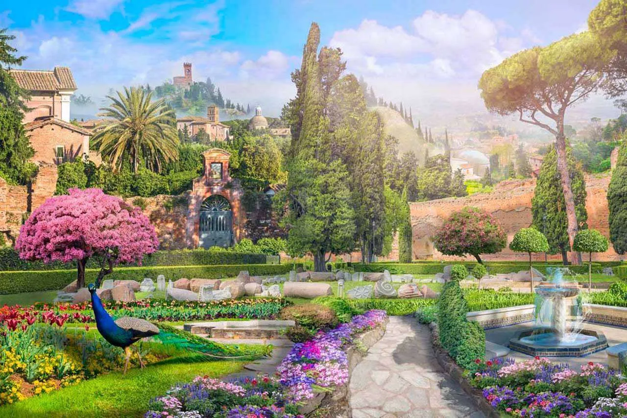 Бесшовные обои на стену: Красивый парк с павлином. Артикул: 7-175