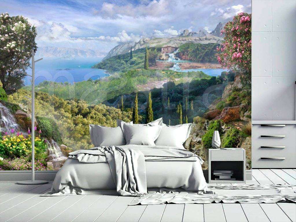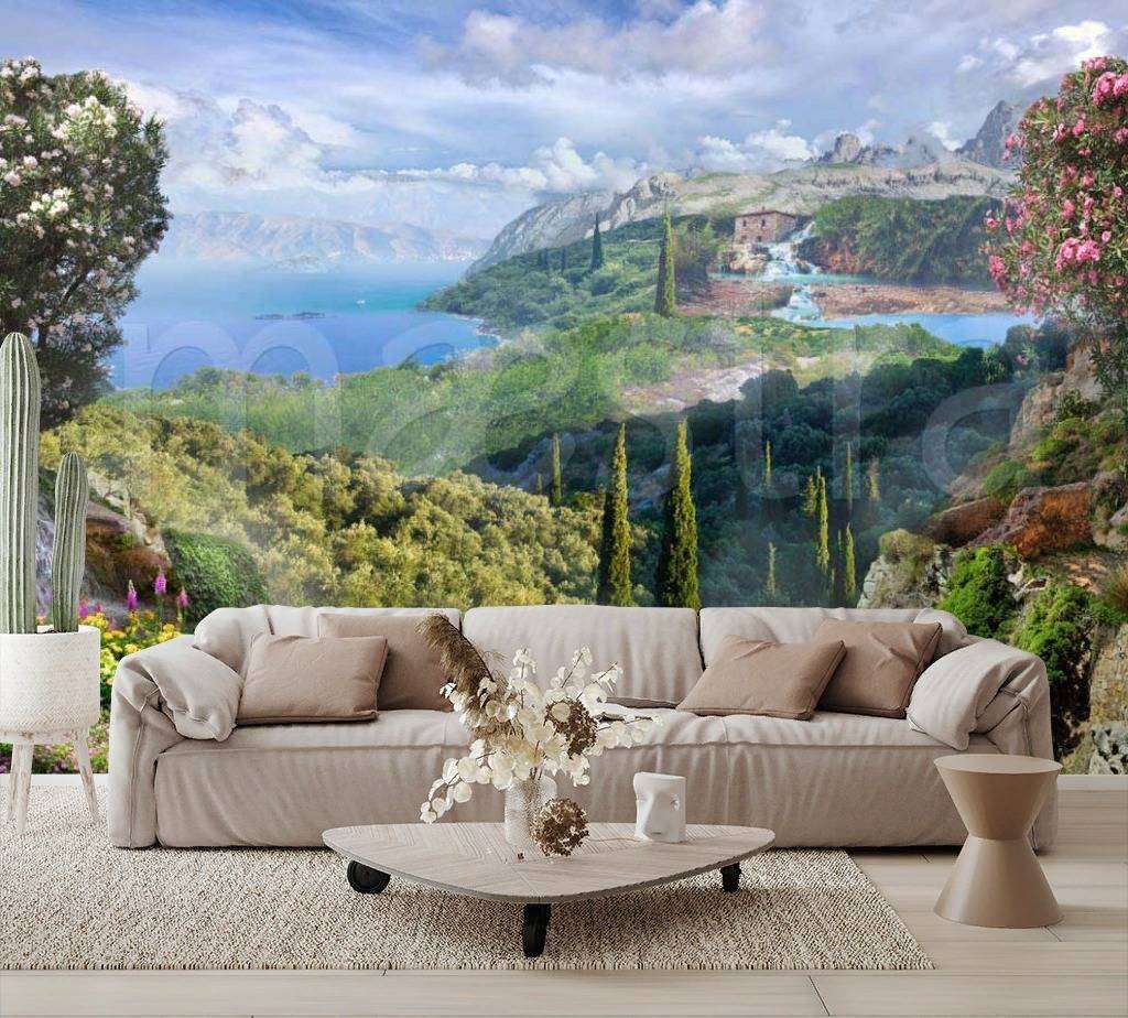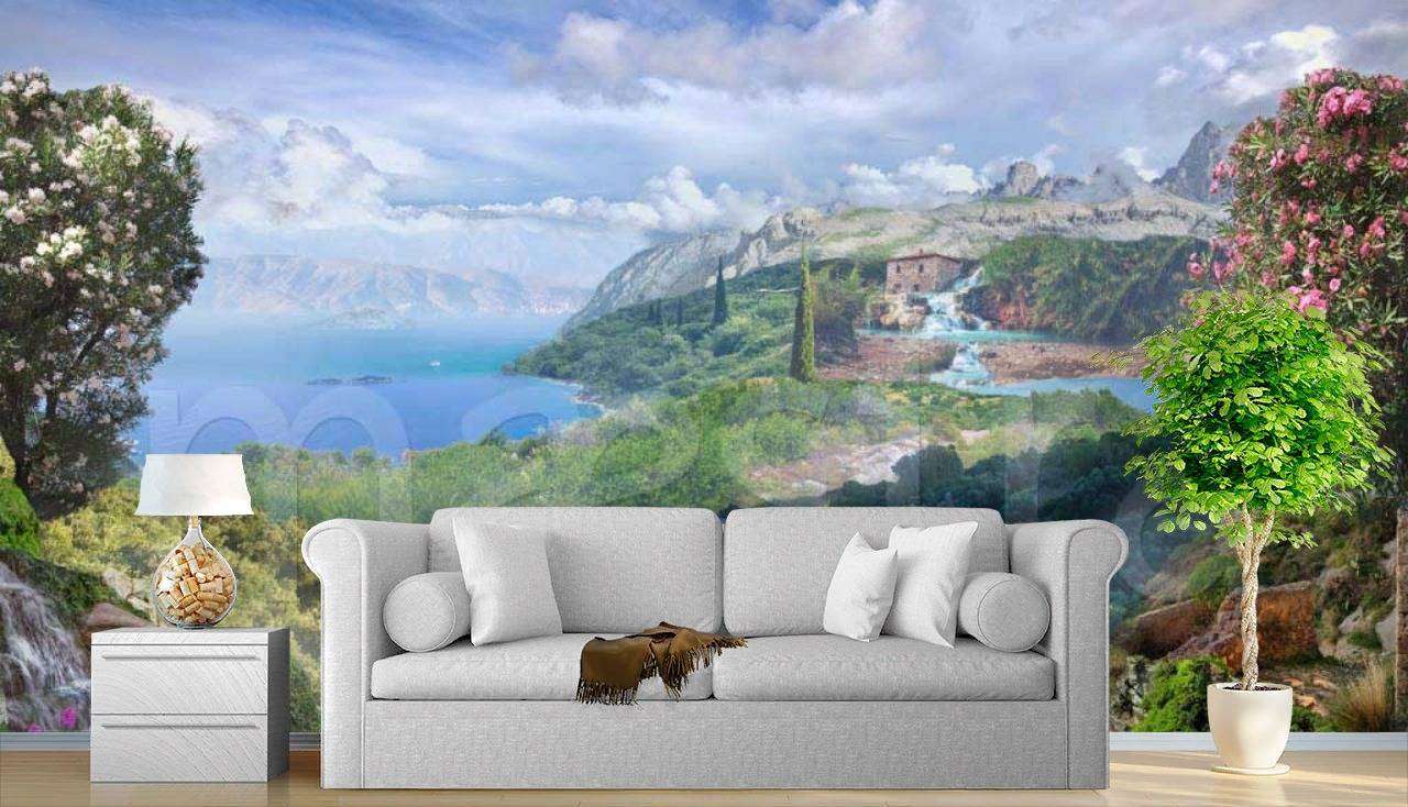 Бесшовные обои на стену: Горный пейзаж с морем. Артикул: 7-085
