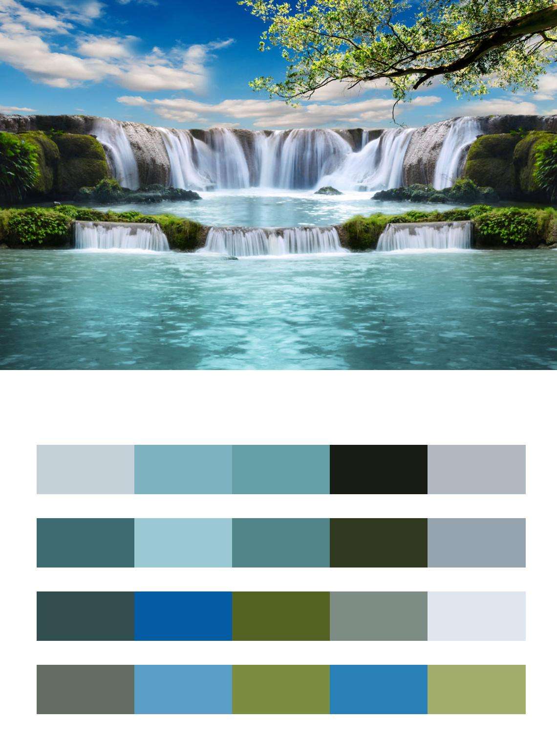 Бесшовные обои на стену: Водопад с голубой лагуной. Артикул: 9-849