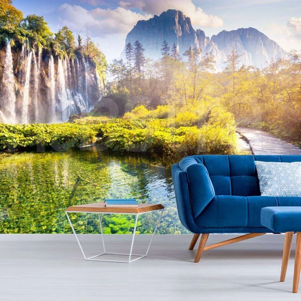 Бесшовные обои на стену: Водопад солнечный. Артикул: 9-863