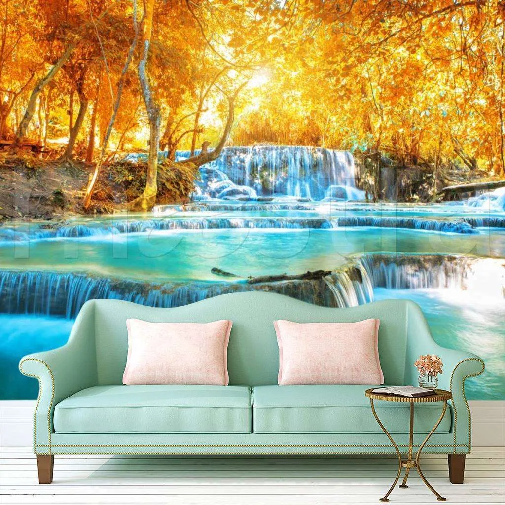 Бесшовные обои на стену: Водопад в лесу Луангпхабанг Лаос. Артикул: 9-891