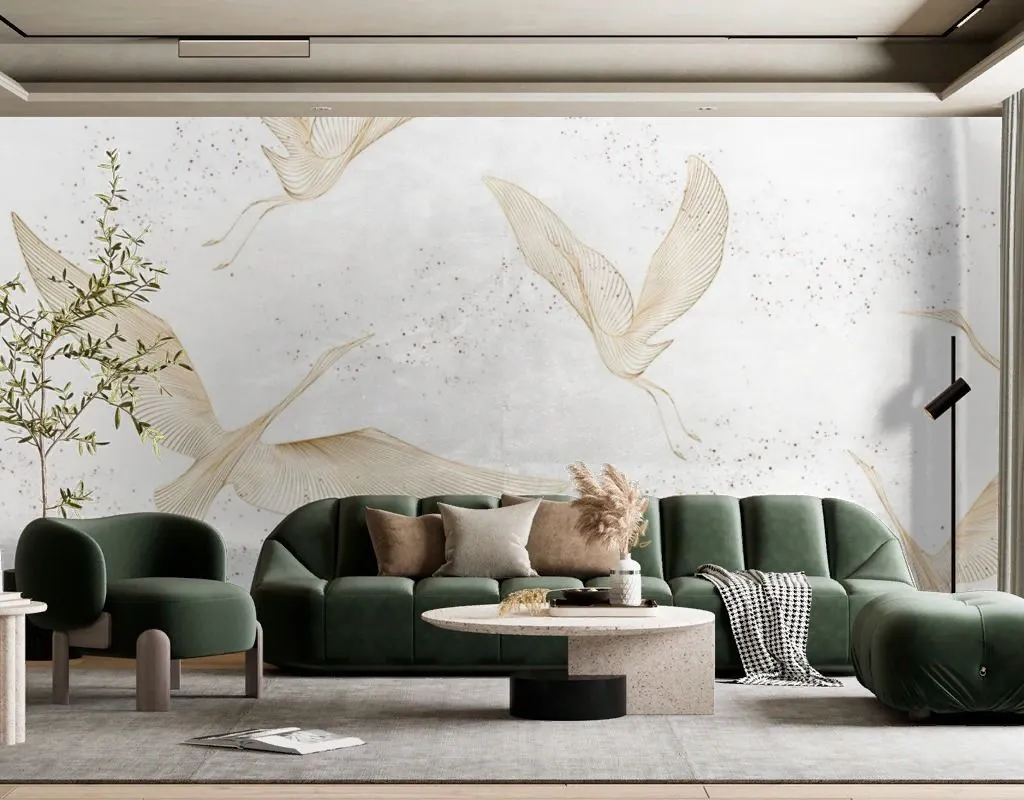 Бесшовные обои на стену: Журавли золотистые летят. Артикул: 9-2103