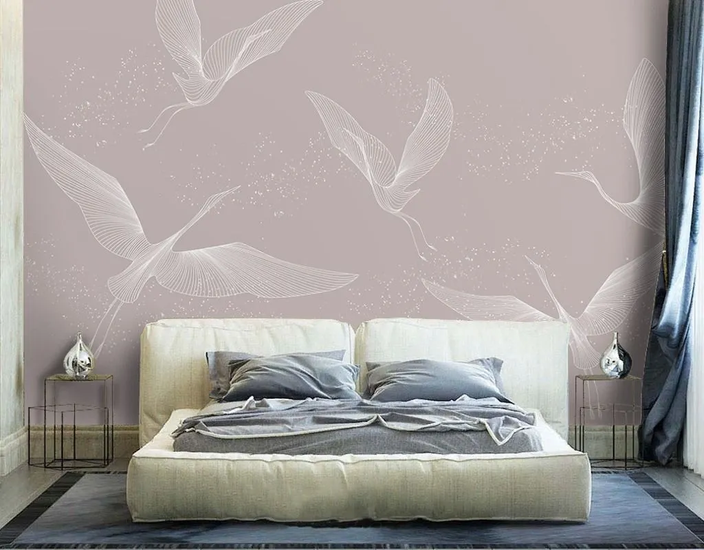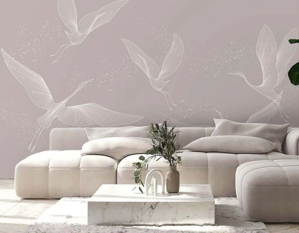 Бесшовные обои на стену: Журавли белые. Артикул: 9-2106