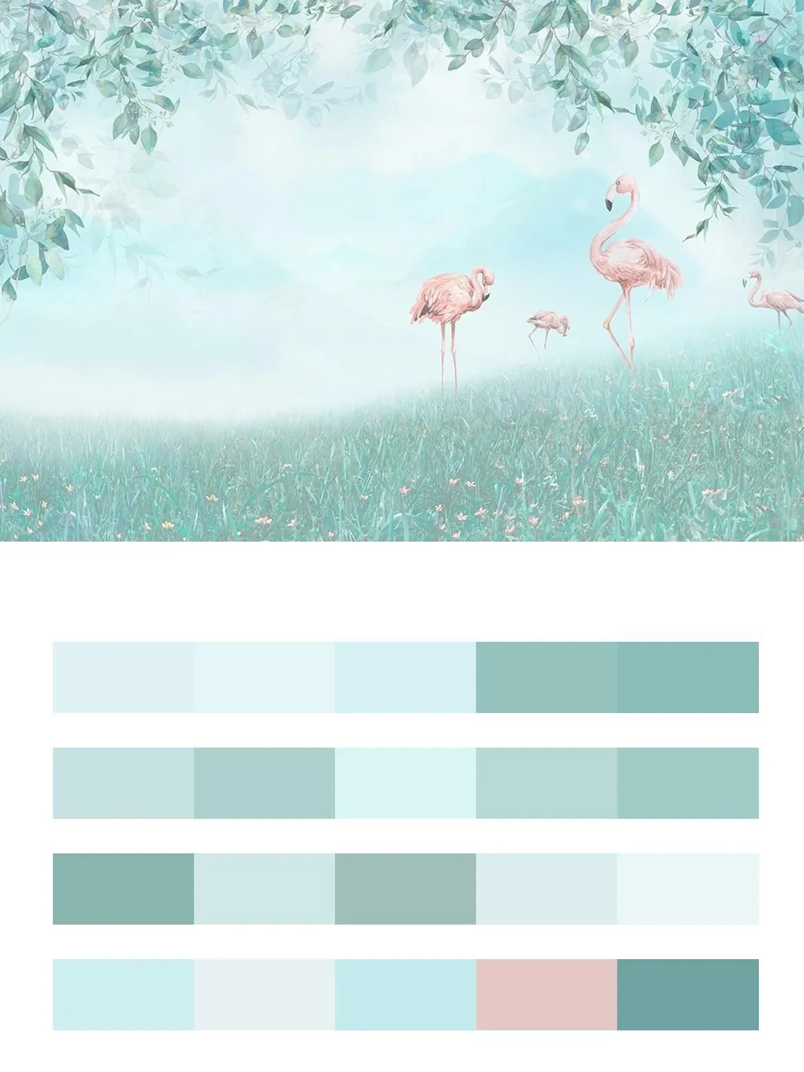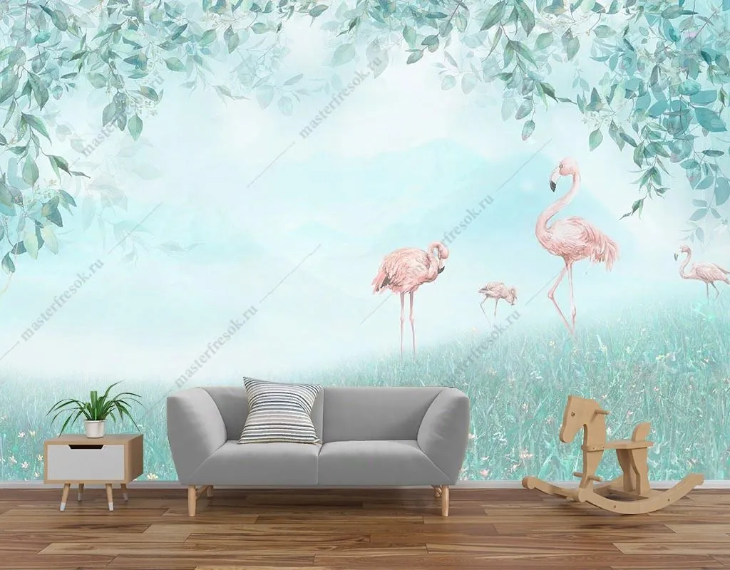 Бесшовные обои на стену: Фламинго на волшебной поляне. Артикул: 12-1463