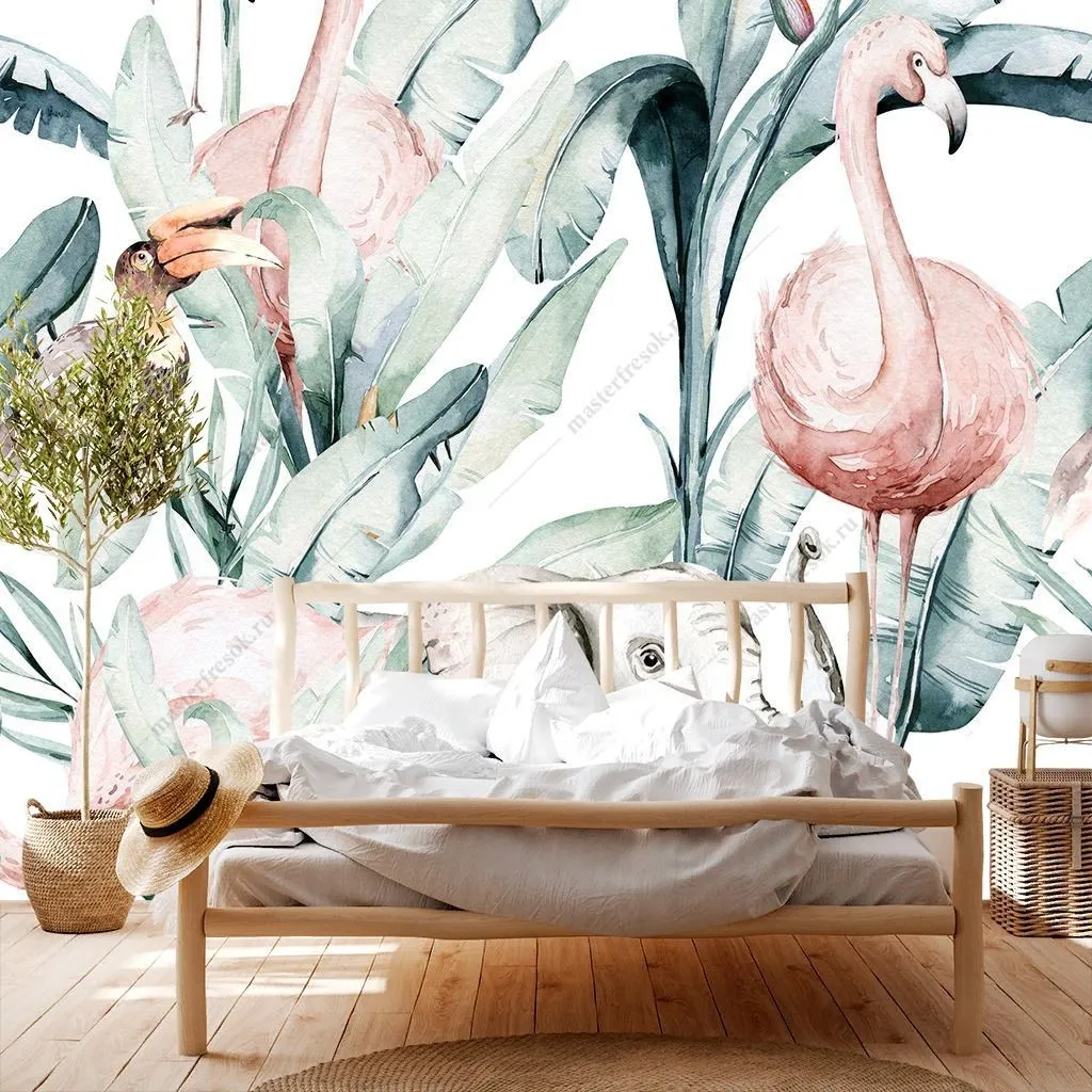Бесшовные обои на стену: Животные в тропических листьях. Артикул: 14-201