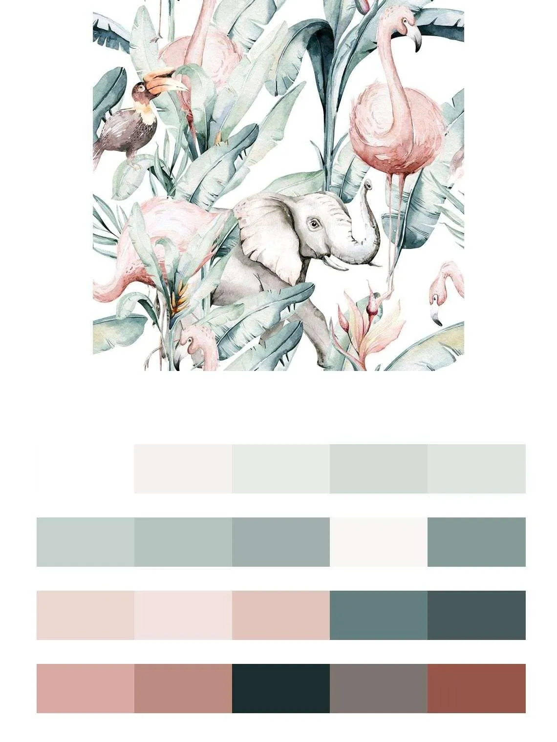 Бесшовные обои на стену: Животные в тропических листьях. Артикул: 14-201