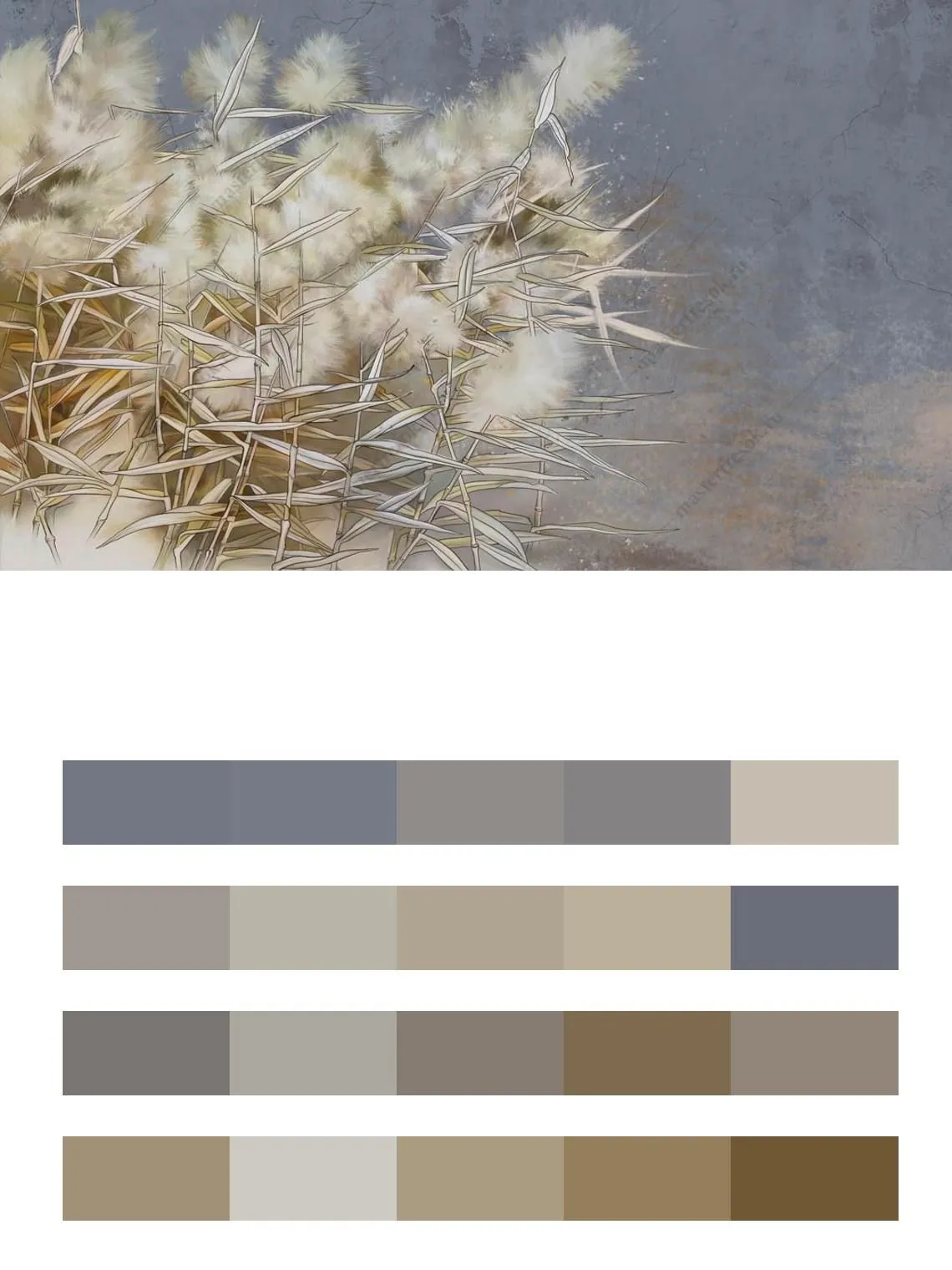 Бесшовные обои на стену: Белый камыш. Артикул: 10-956
