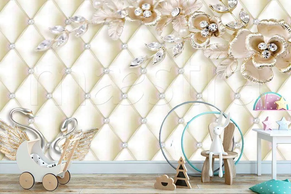 Бесшовные обои на стену: лебеди и цветы на 3д фоне. Артикул: 10-390