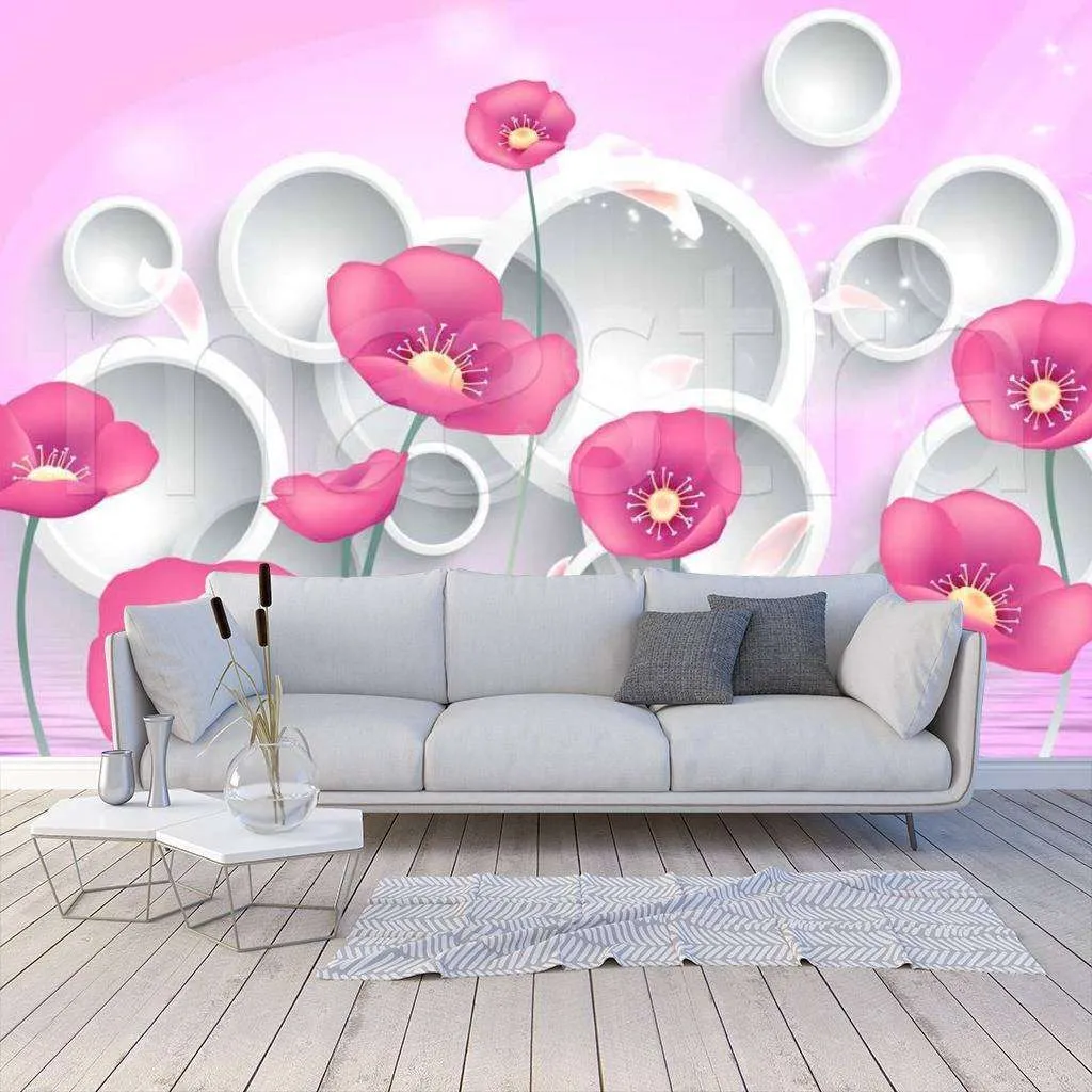 Розовые цветы на воде с 3д фоном Арт. 10-422