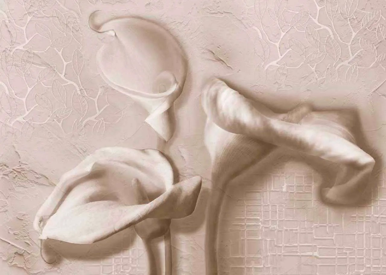 Бесшовные обои на стену: объемные каллы из лепнины. Артикул: 7-501