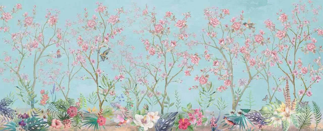 Бесшовные обои на стену: Деревья на голубом фоне. Артикул: 7-223