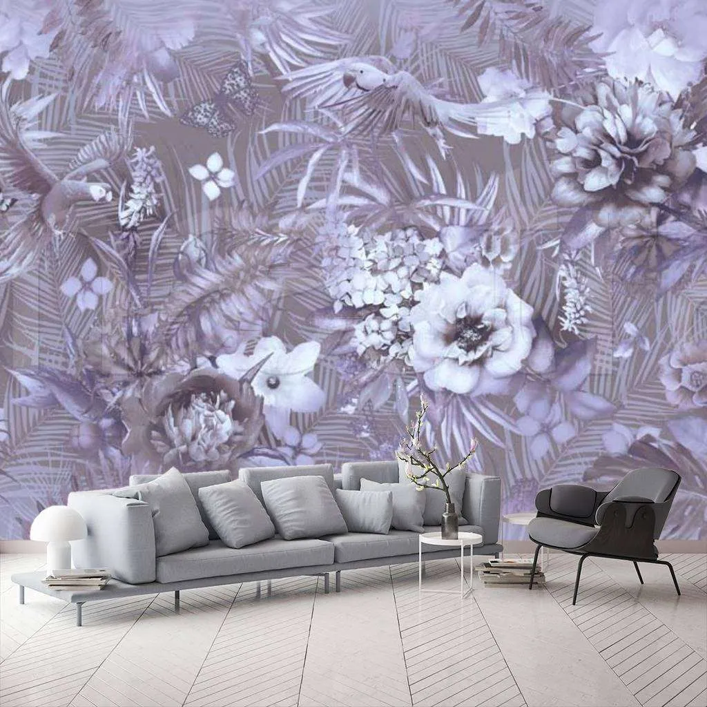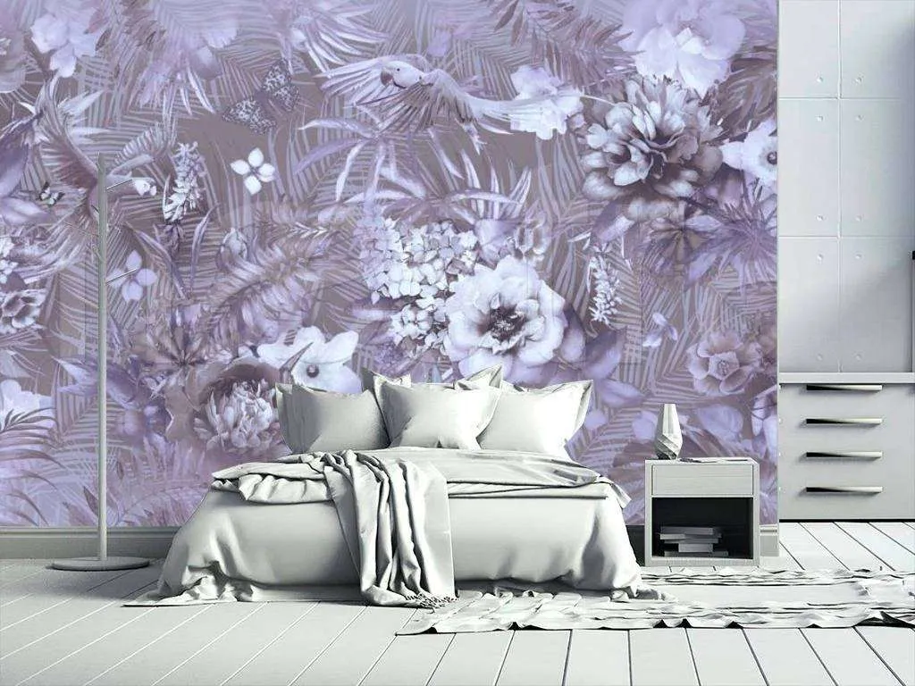 Бесшовные обои на стену: Цветущий сад с попугаями 2. Артикул: 7-558
