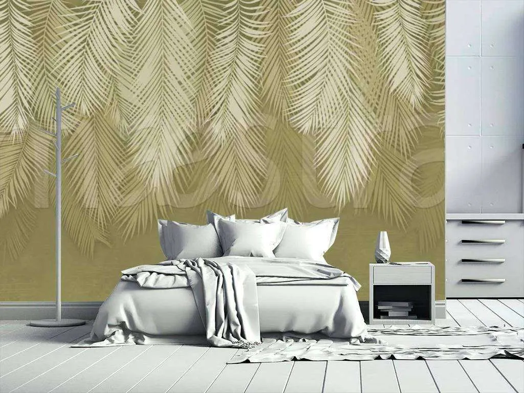 Бесшовные обои на стену: Перья на горчичном фоне. Артикул: 7-880