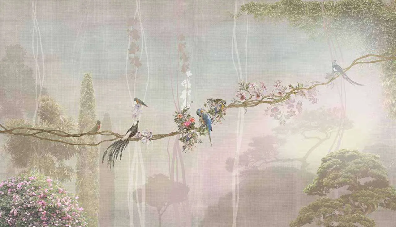 Бесшовные обои на стену: Птицы под дождем в серых тонах. Артикул: 7-310