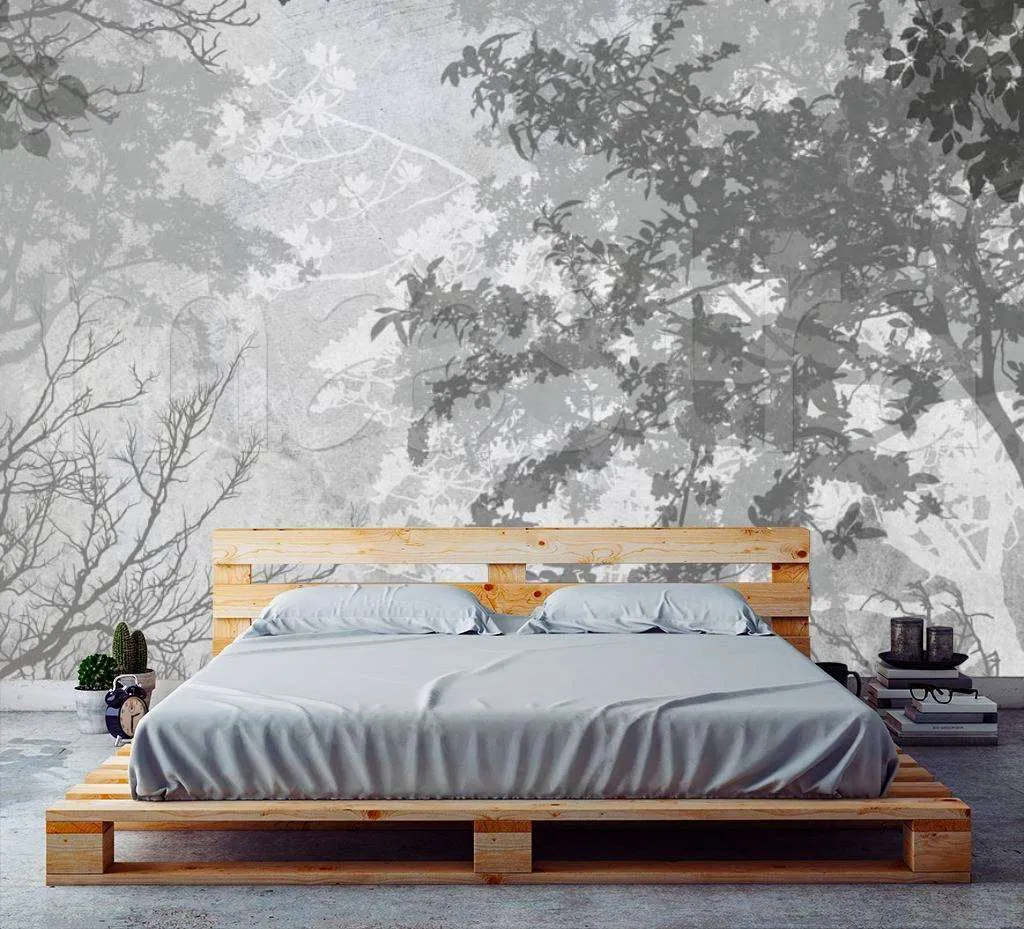 Бесшовные обои на стену: Деревья на сером фоне. Артикул: 7-618