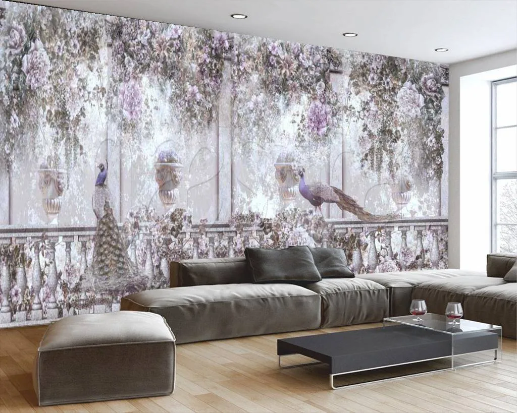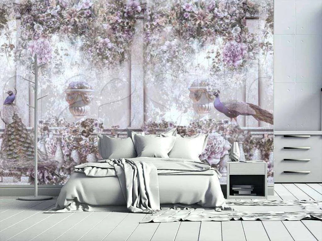 Бесшовные обои на стену: Цветочный балкон с павлинами. Артикул: 7-228