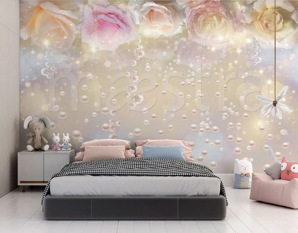 Бесшовные обои на стену: Нежные розы с жемчугом. Артикул: 7-442
