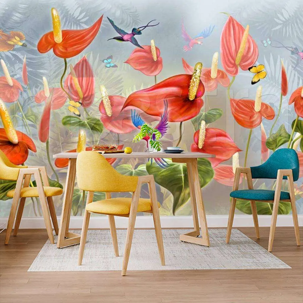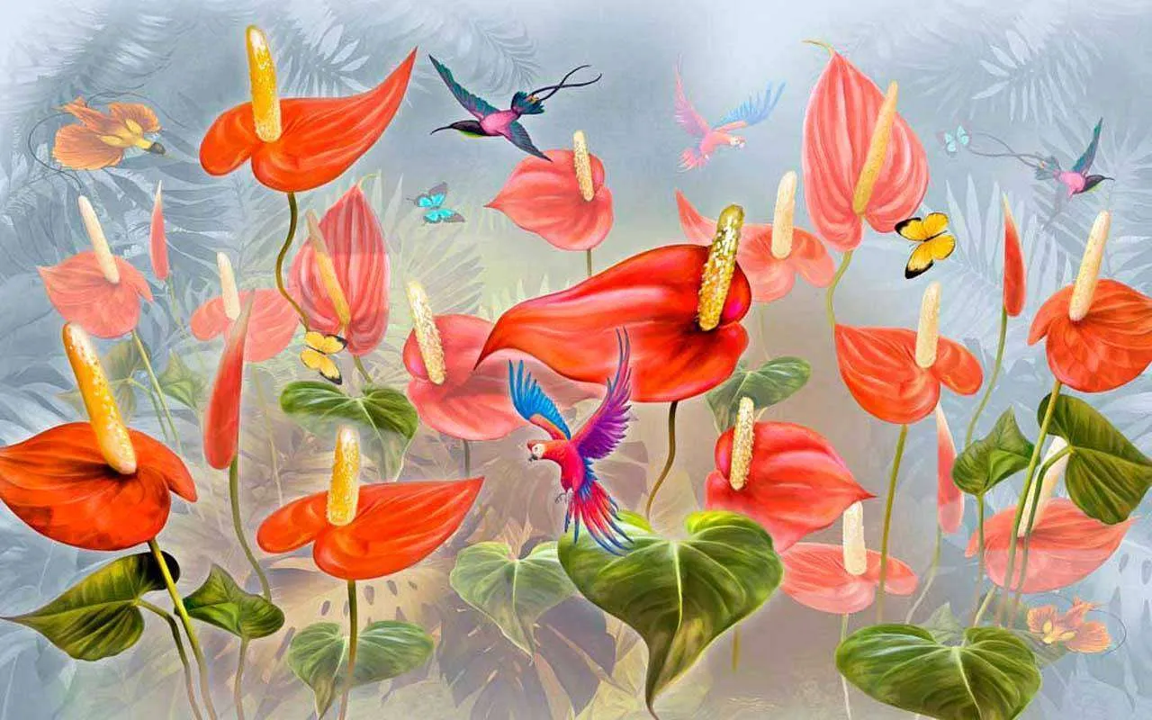 Бесшовные обои на стену: Красные цветы антуриум. Артикул: 7-503