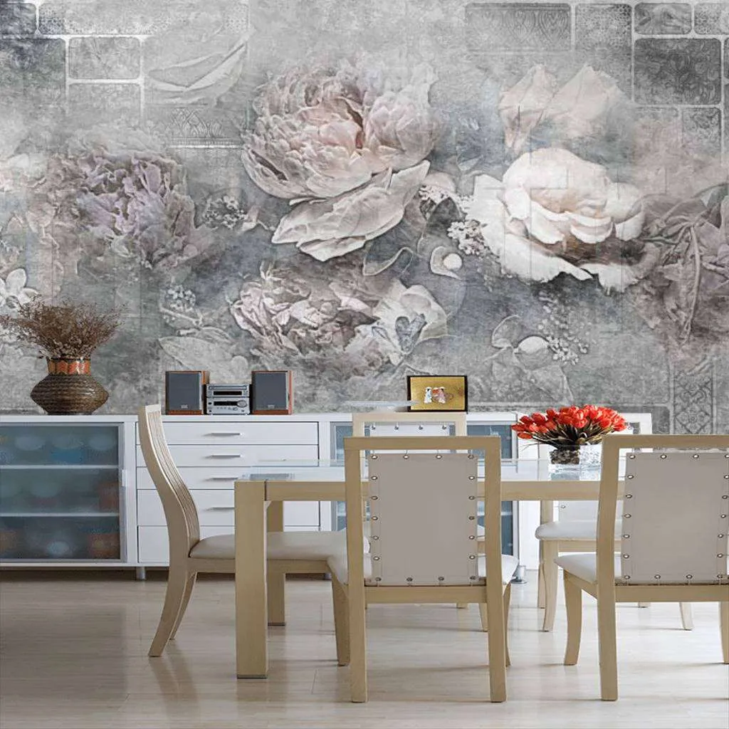 Бесшовные обои на стену: Цветы 3д на сером фоне. Артикул: 7-765