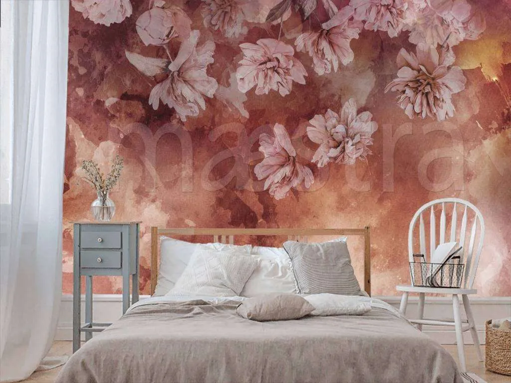Бесшовные обои на стену: Цветы 3 д в красном тумане. Артикул: 7-794