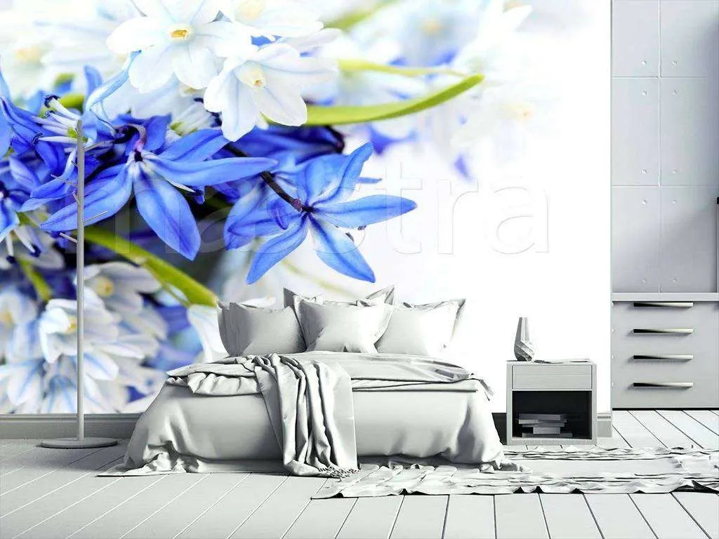 Бесшовные обои на стену: Синие цветы на стену. Артикул: 9-085
