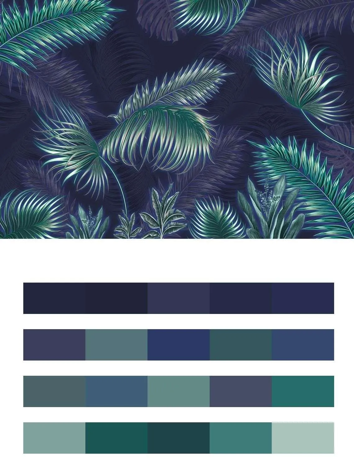 Бесшовные обои на стену: Тропические листья на темном фоне. Артикул: 10-731