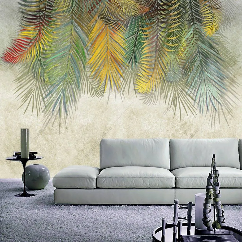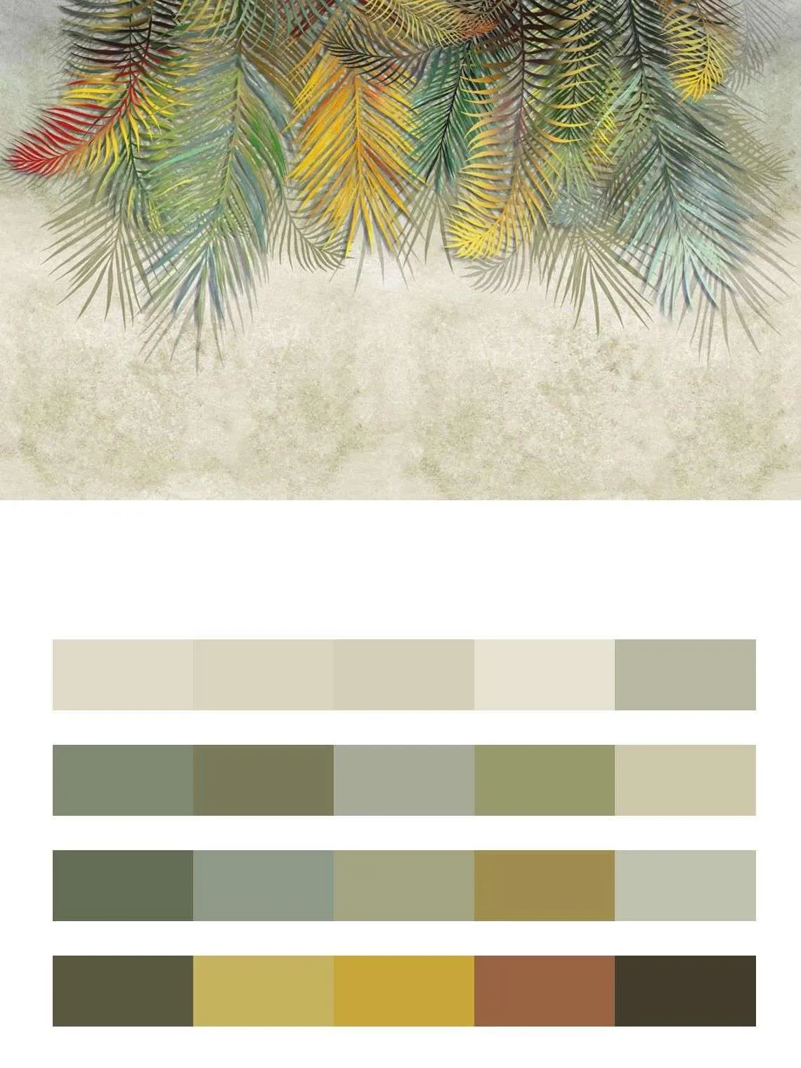 Бесшовные обои на стену: Разноцветные листья пальмы. Артикул: 10-765