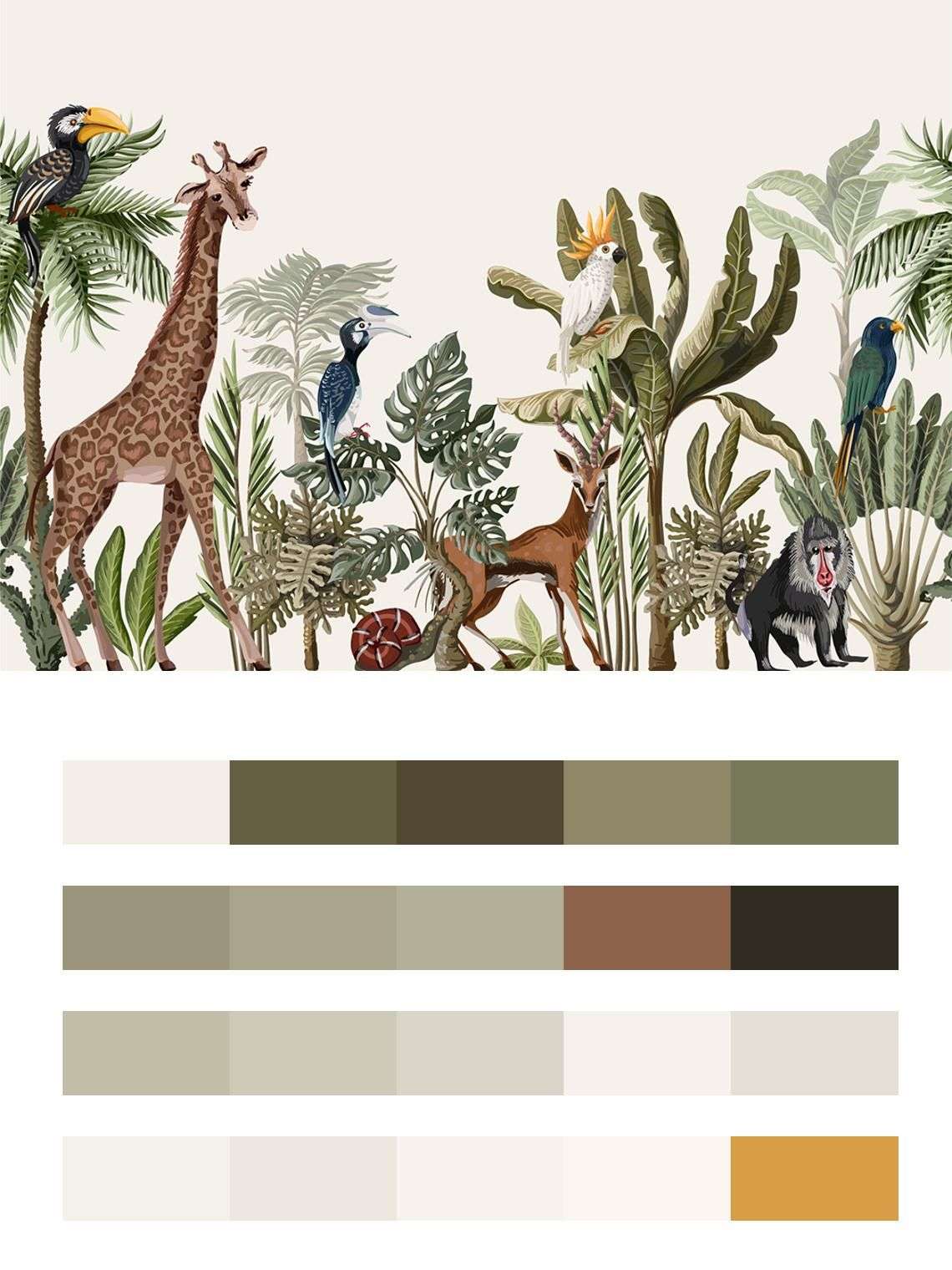 Бесшовные обои на стену: Звери тропиков. Артикул: 12-1393
