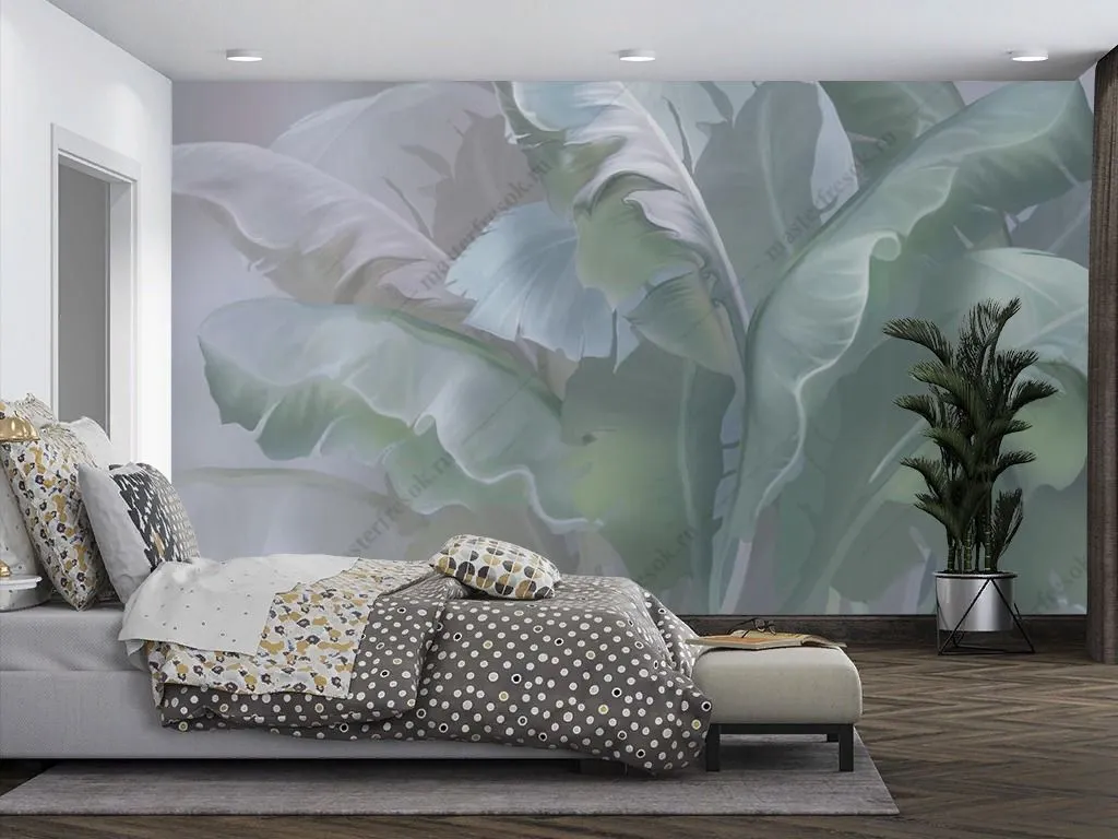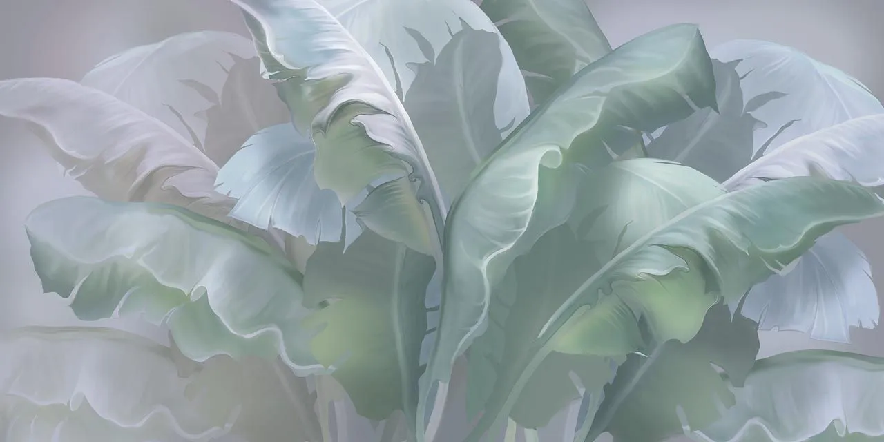 Бесшовные обои на стену: Стебли тропических листьев. Артикул: 13-455