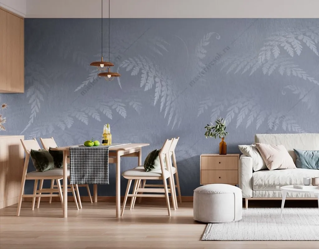 Бесшовные обои на стену: Листья папоротника в тумане. Артикул: 13-467