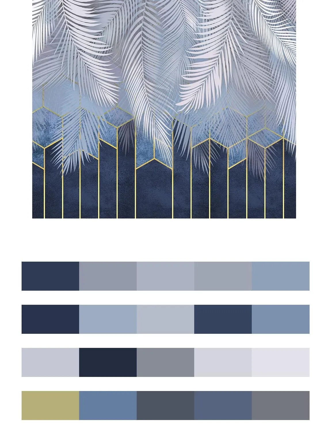 Бесшовные обои на стену: Ботаника с голубой геометрией. Артикул: 14-200