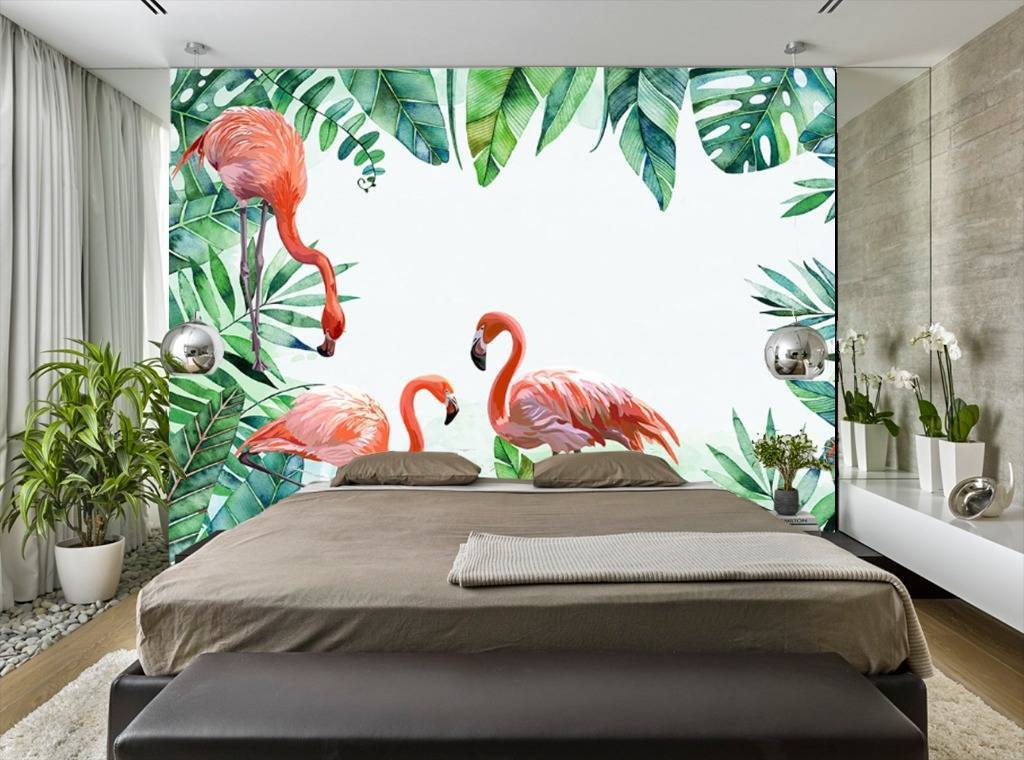 Бесшовные обои на стену: Фламинго в папоротнике. Артикул: 15-544