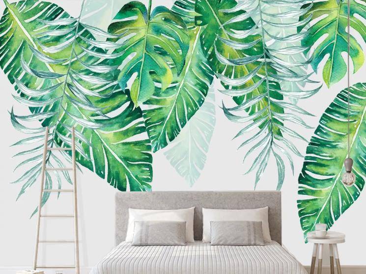 Бесшовные обои на стену: Тропические зеленые листья. Артикул: 15-576