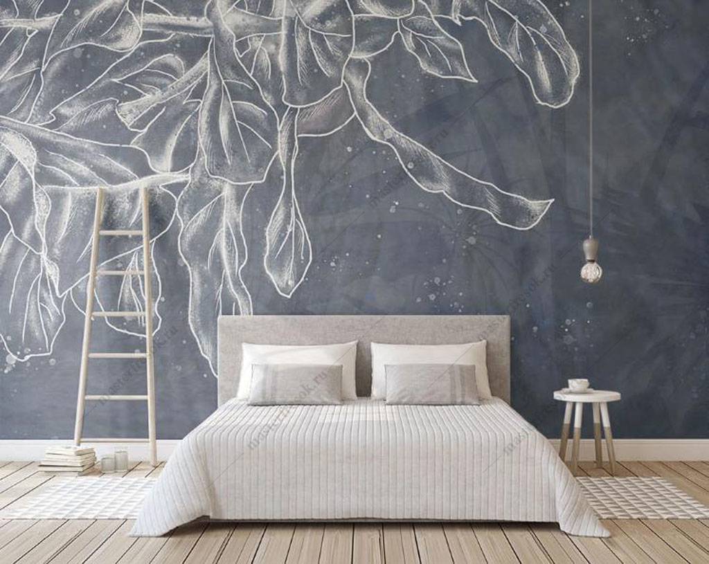Бесшовные обои на стену: Листья мелом. Артикул: 15-972