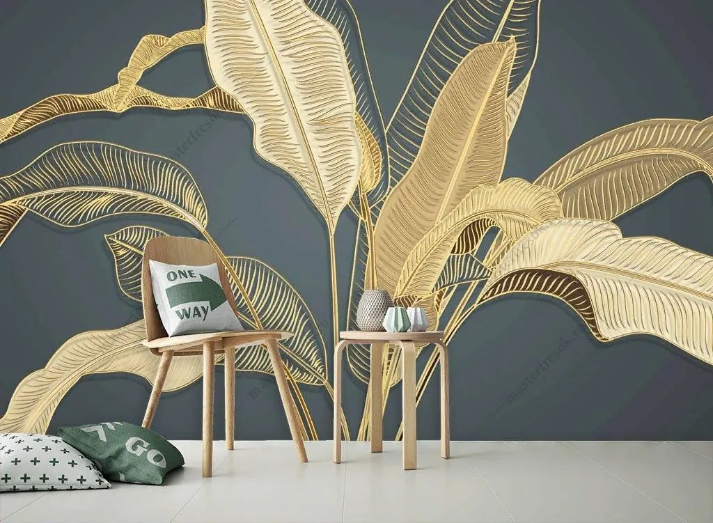 Бесшовные обои на стену: Золотые перья на темном фоне. Артикул: 9-1195