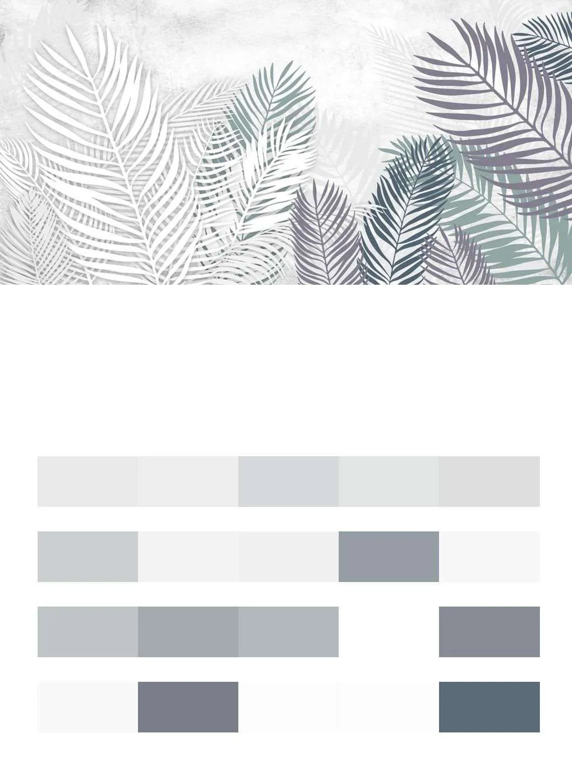 Бесшовные обои на стену: Пальмовые листья на белом фоне. Артикул: 9-1196