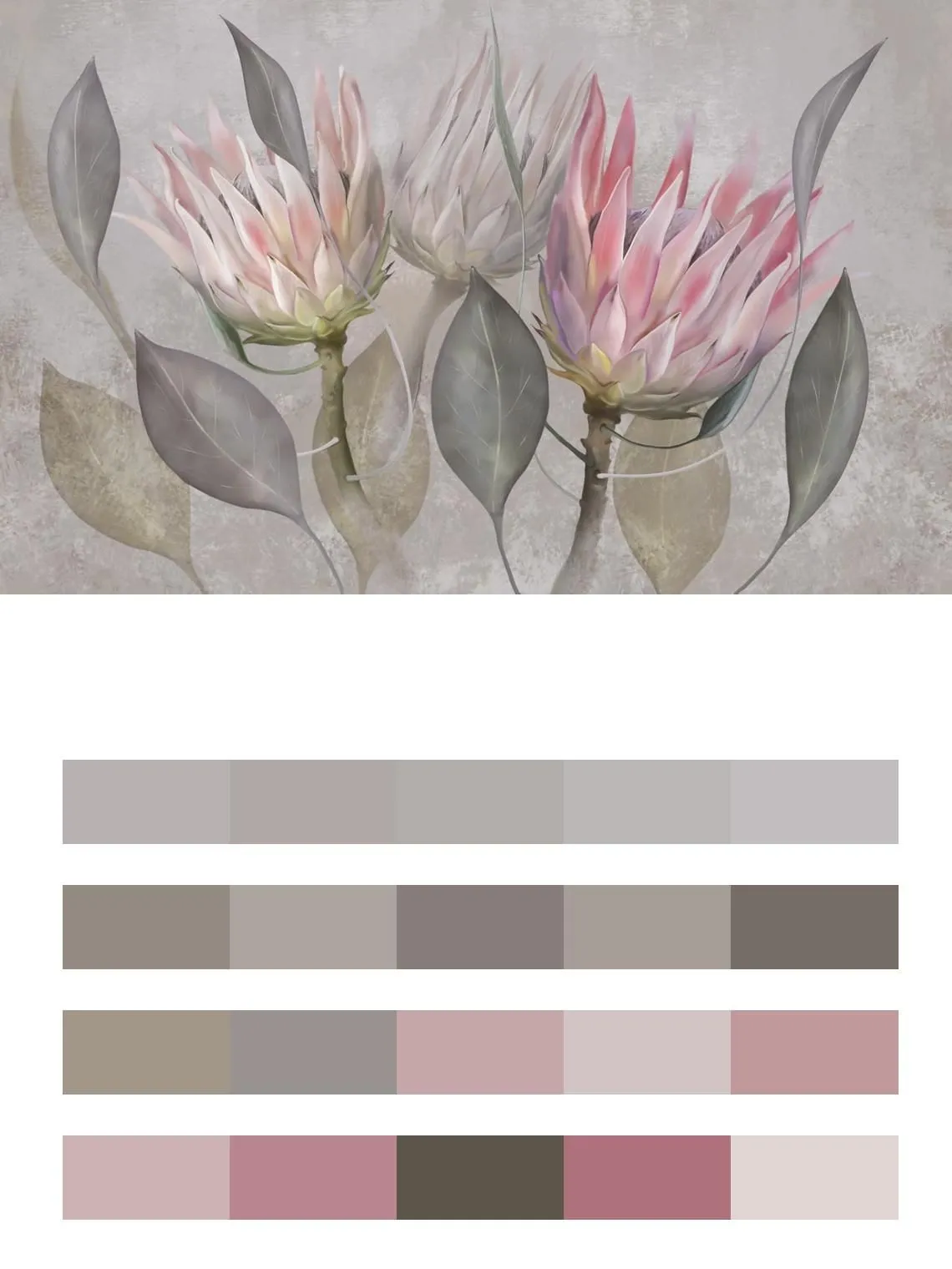 Бесшовные обои на стену: Розовые протеи. Артикул: 13-481