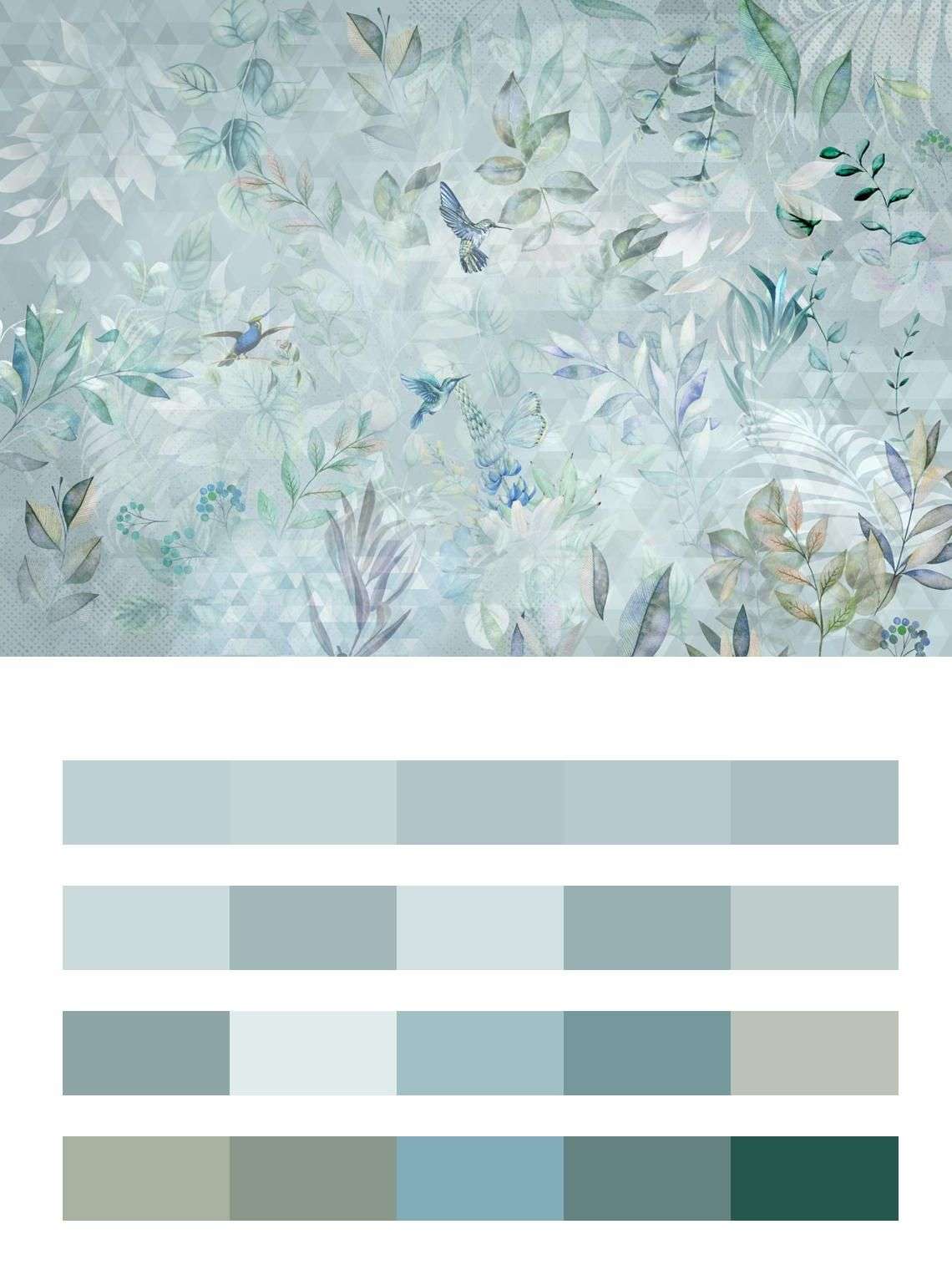 Бесшовные обои на стену: Птички райские на голубом фоне. Артикул: 13-584