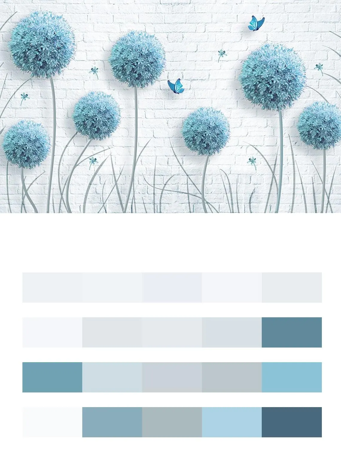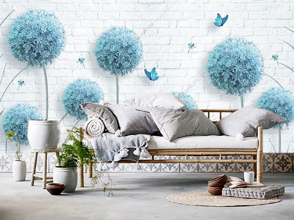Бесшовные обои на стену: Голубые одуванчики. Артикул: 14-332