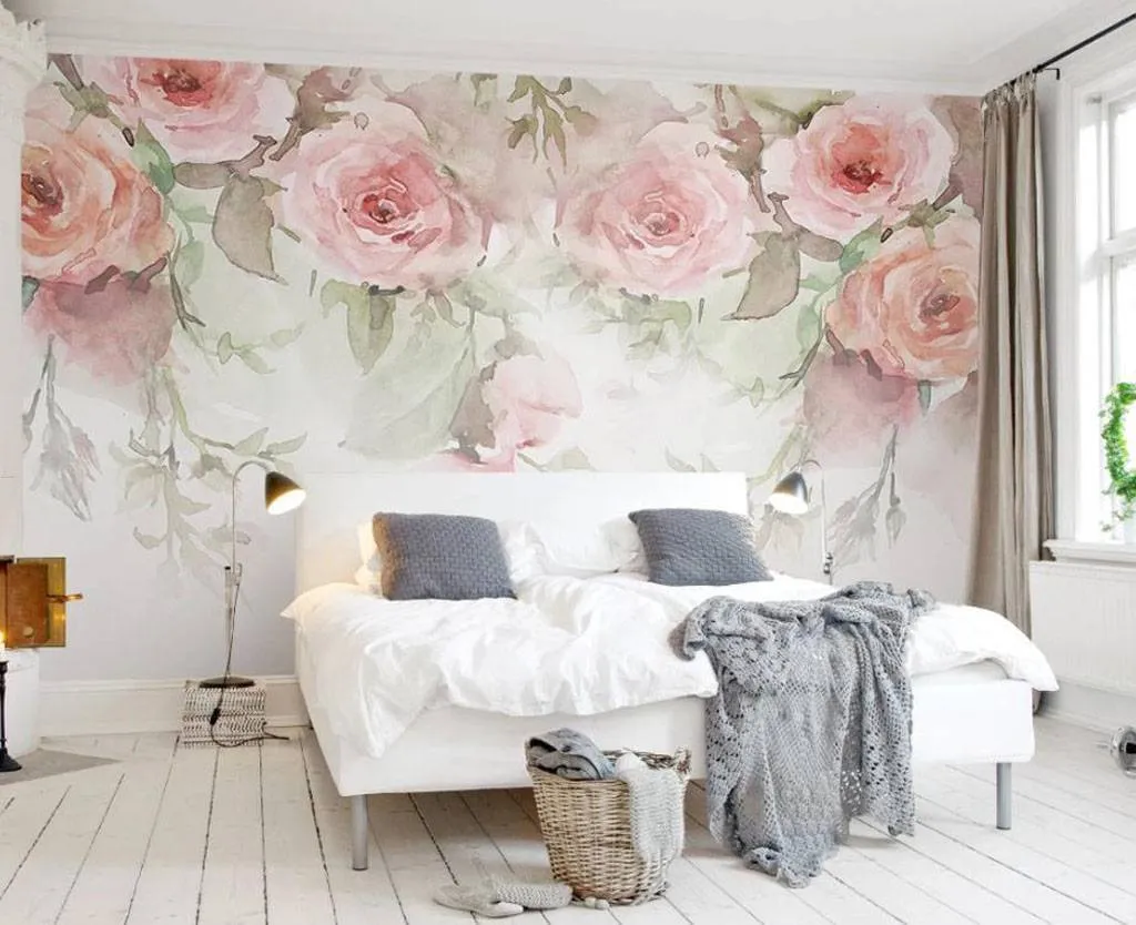 Бесшовные обои на стену: Акварель и розы. Артикул: 15-688