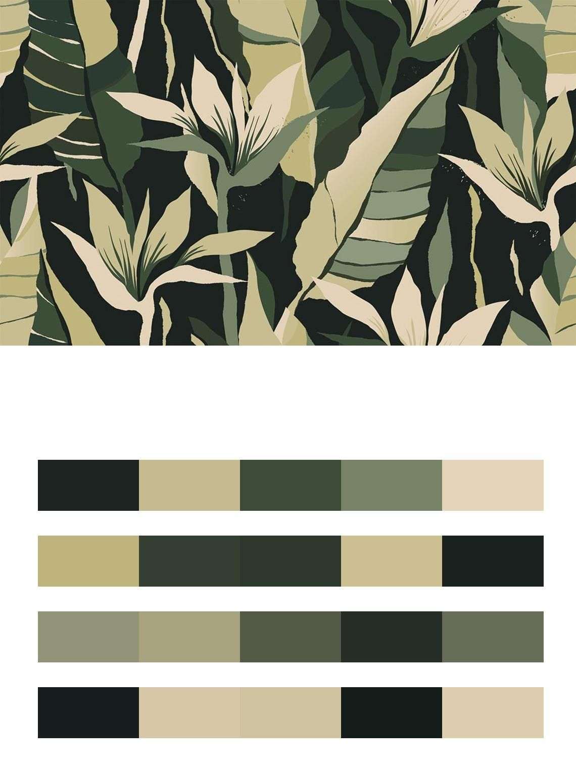 Бесшовные обои на стену: Пальмовые листья на черном фоне. Артикул: 9-1117