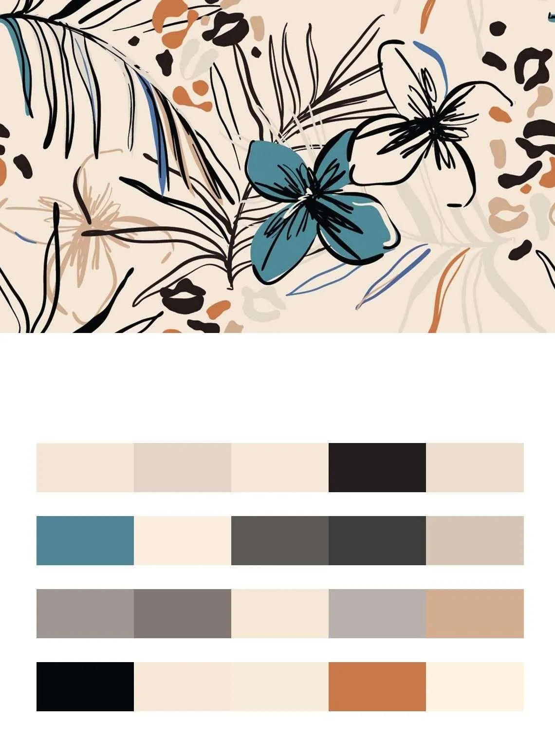 Бесшовные обои на стену: Цветы на бежевом фоне. Артикул: 9-1120