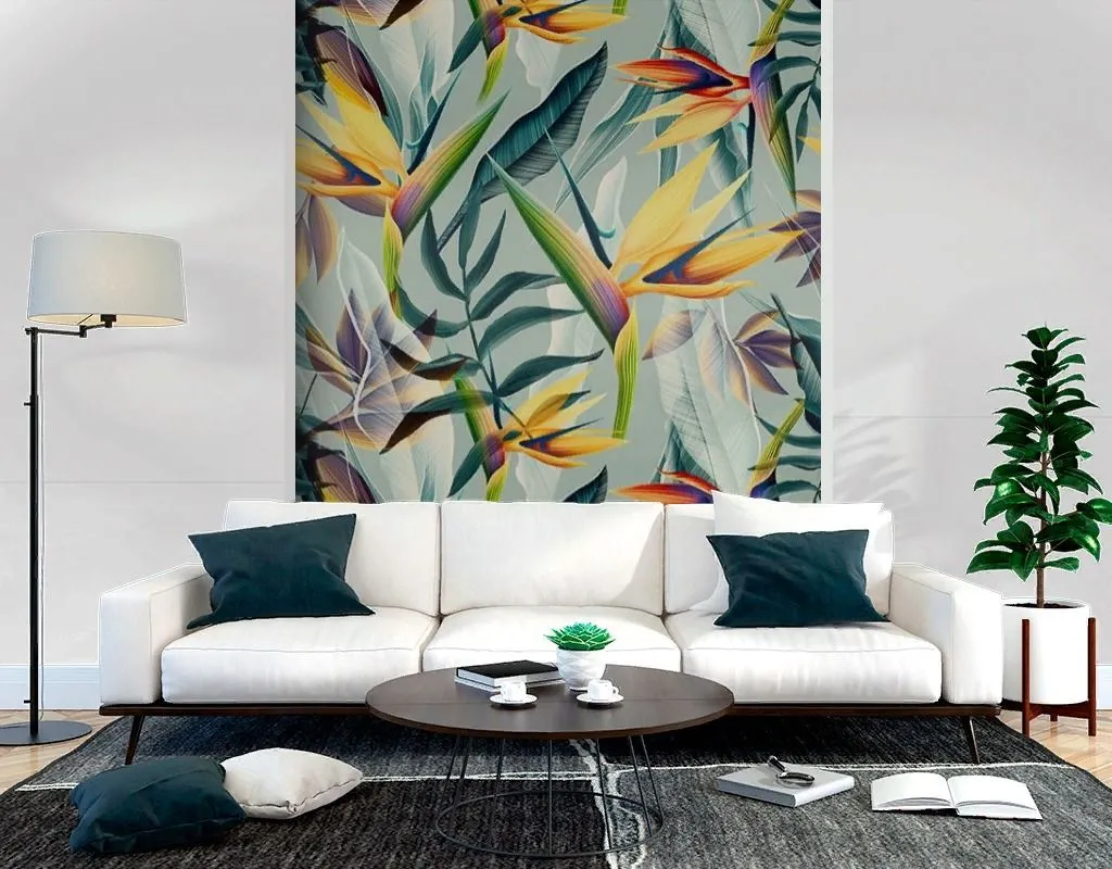 Бесшовные обои на стену: Разноцветные тропические листья. Артикул: 9-1953