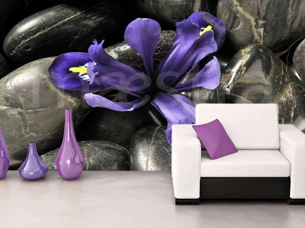 Бесшовные обои на стену: Ирисы на камнях. Артикул: 10-002