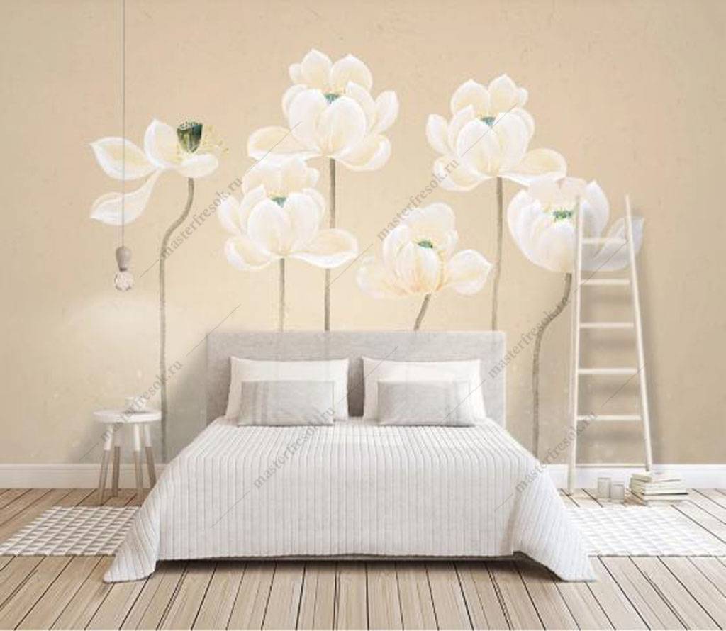 Бесшовные обои на стену: Белые маки. Артикул: 15-892
