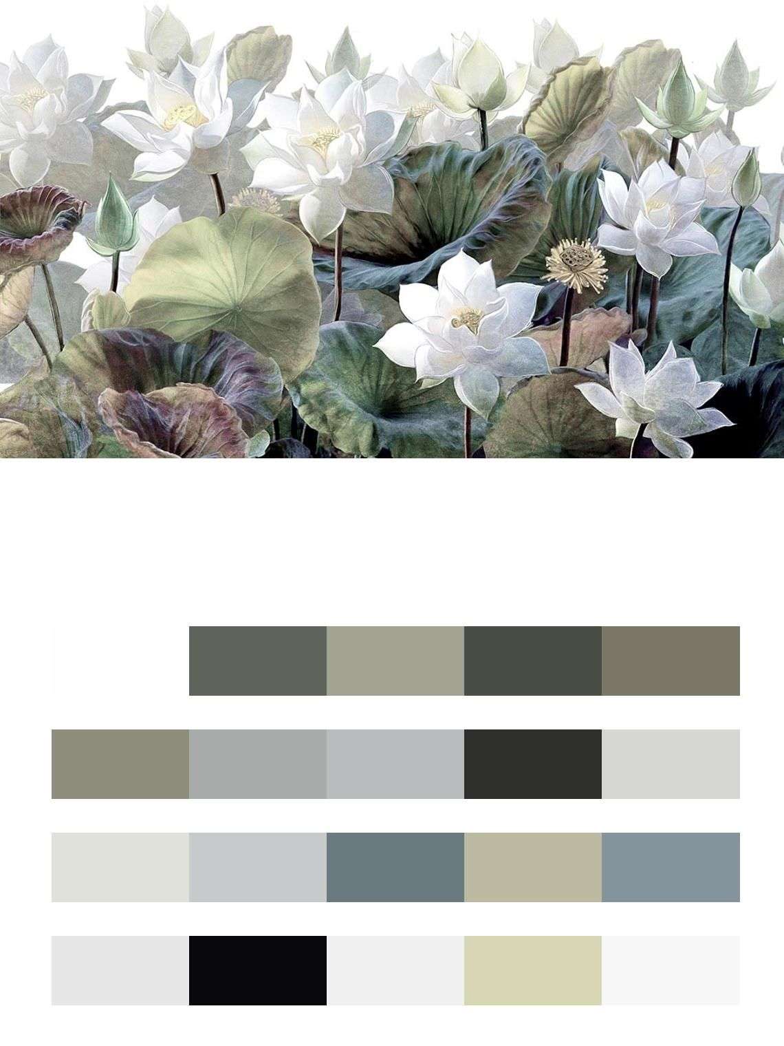 Бесшовные обои на стену: Лотосы на белом фоне. Артикул: 9-1637