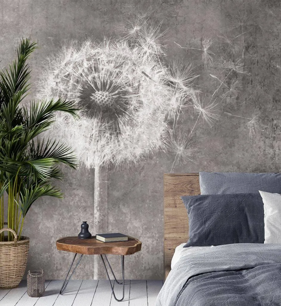 Бесшовные обои на стену: Одуванчик на сером фоне. Артикул: 10-882