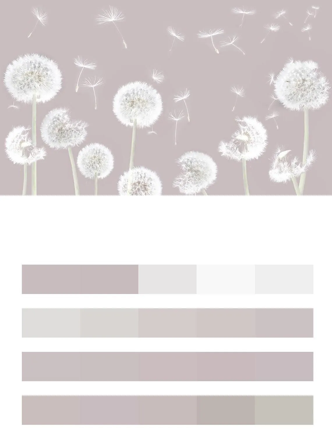 Бесшовные обои на стену: Нежные одуванчики пудровый фон. Артикул: 12-1518