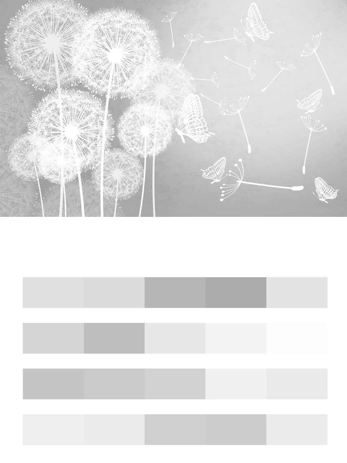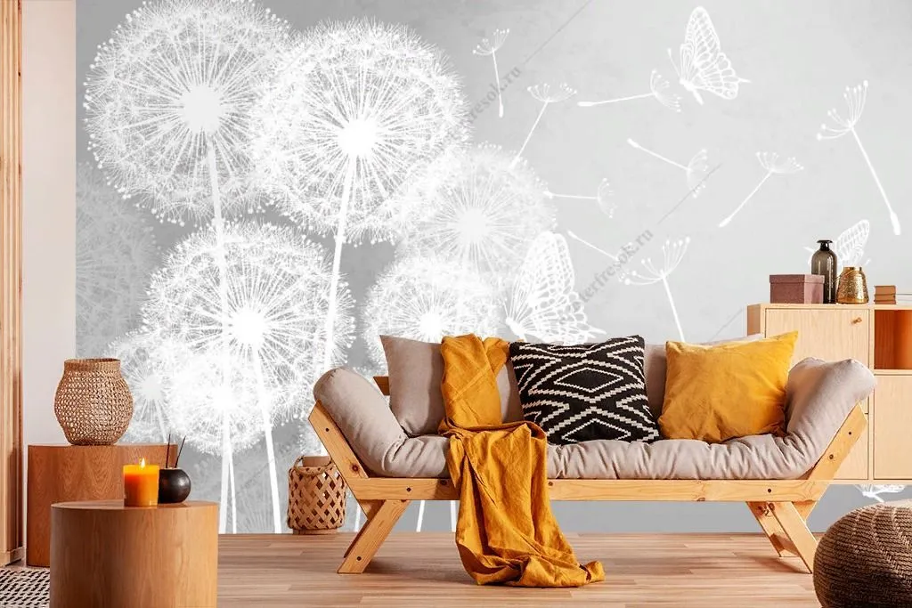 Бесшовные обои на стену: Одуванчики на сером фоне. Артикул: 14-300