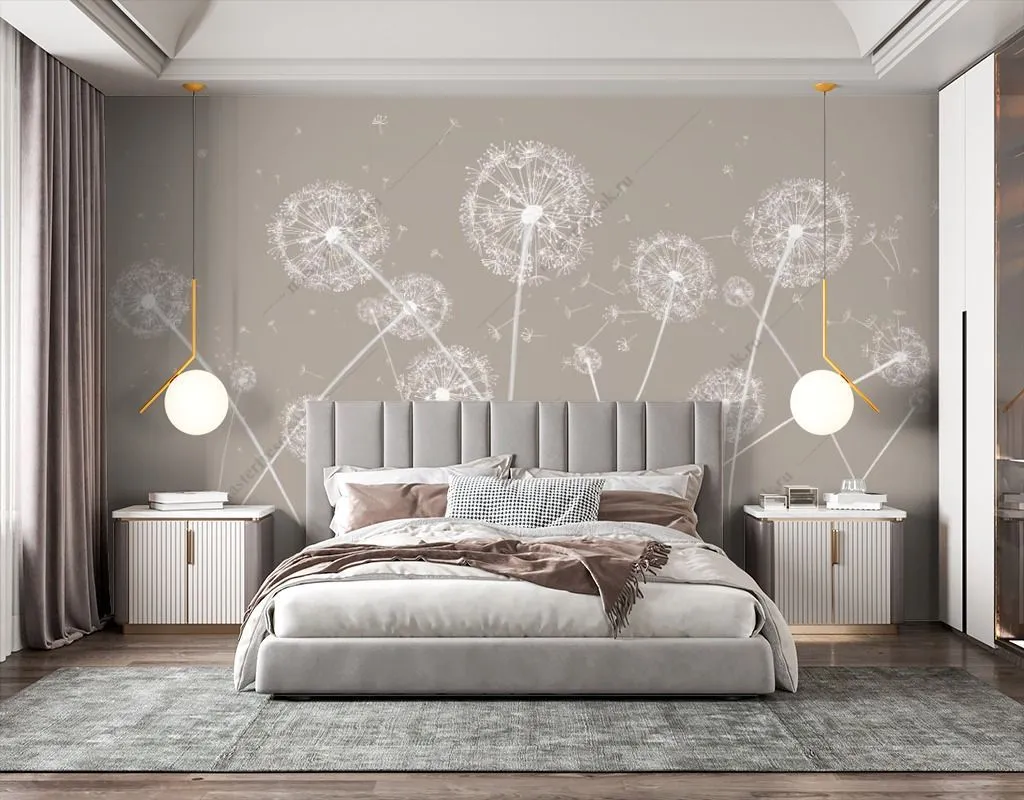 Бесшовные обои на стену: Одуванчики на бежевом фоне. Артикул: 14-524